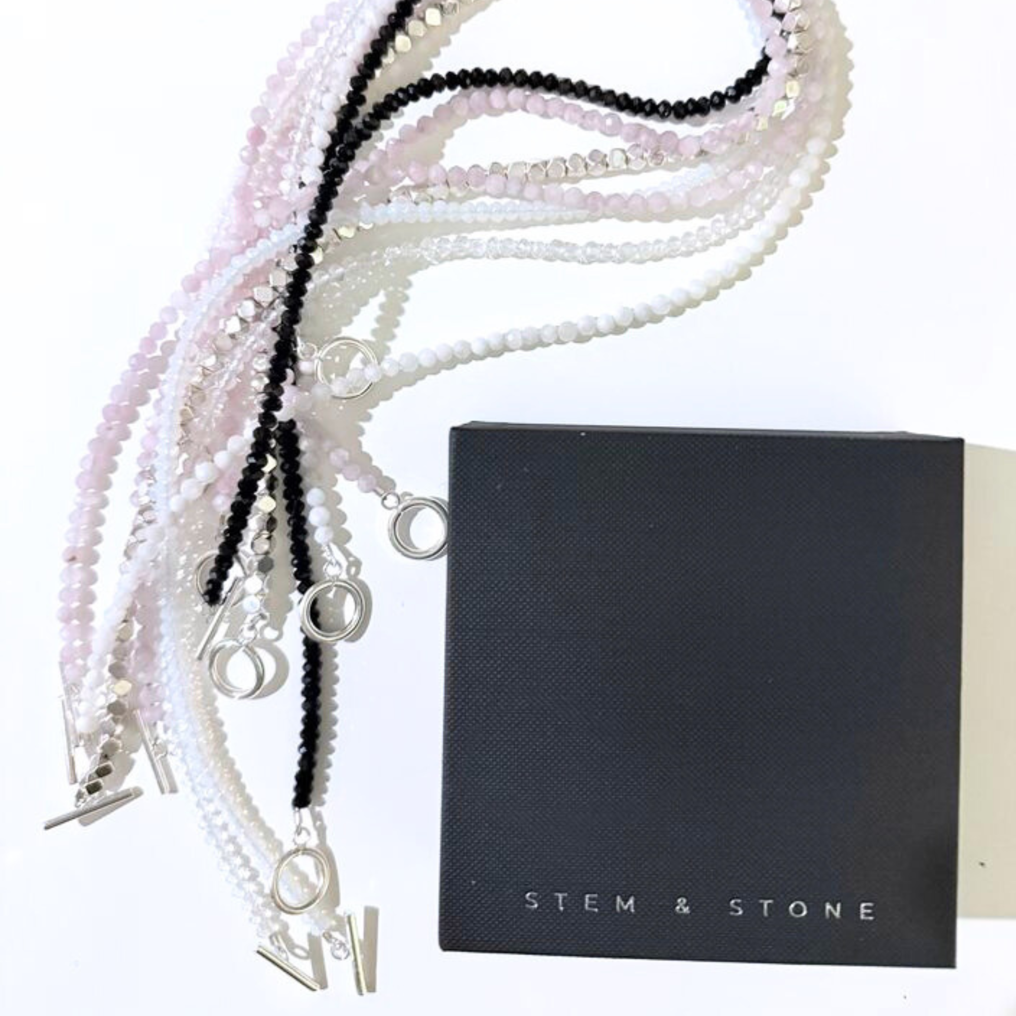 PINK AMETHYST PAPERCLIP CHAIN TOGGLE NECKLACE