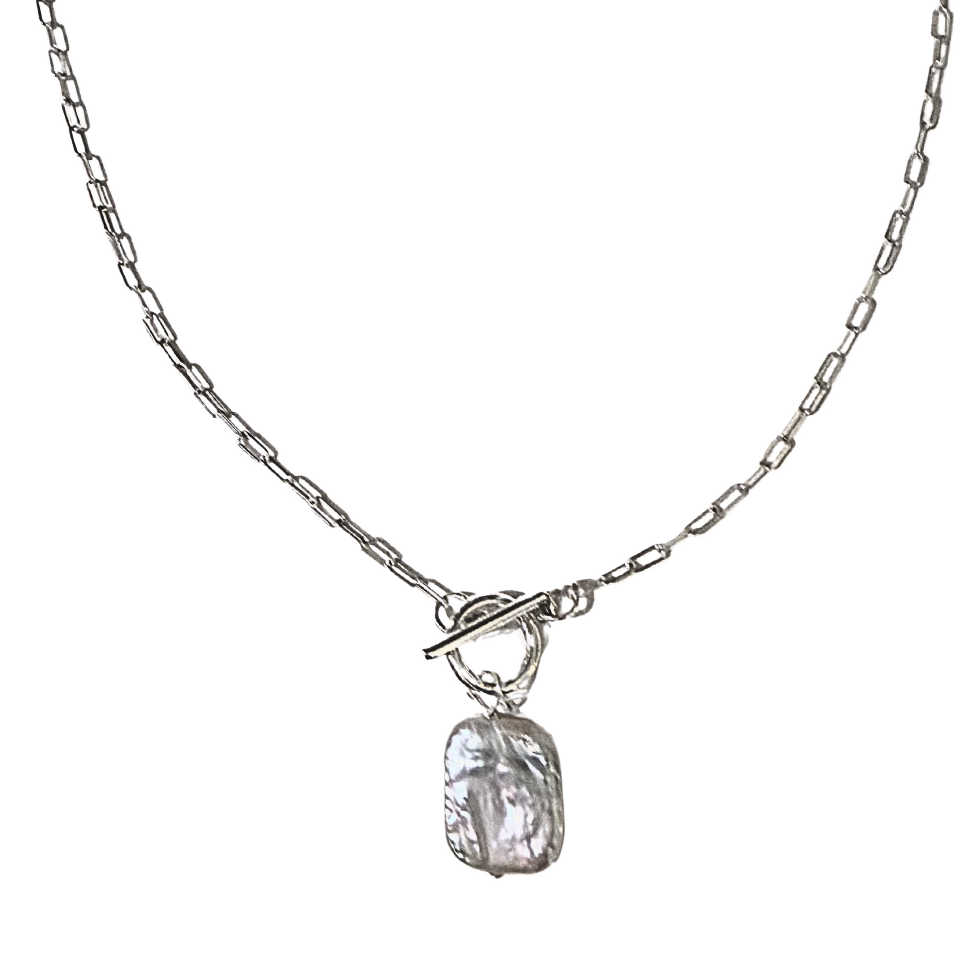 SILVER TOGGLE PAPERCLIP CHAIN KEISHI SQUARE PEARL
